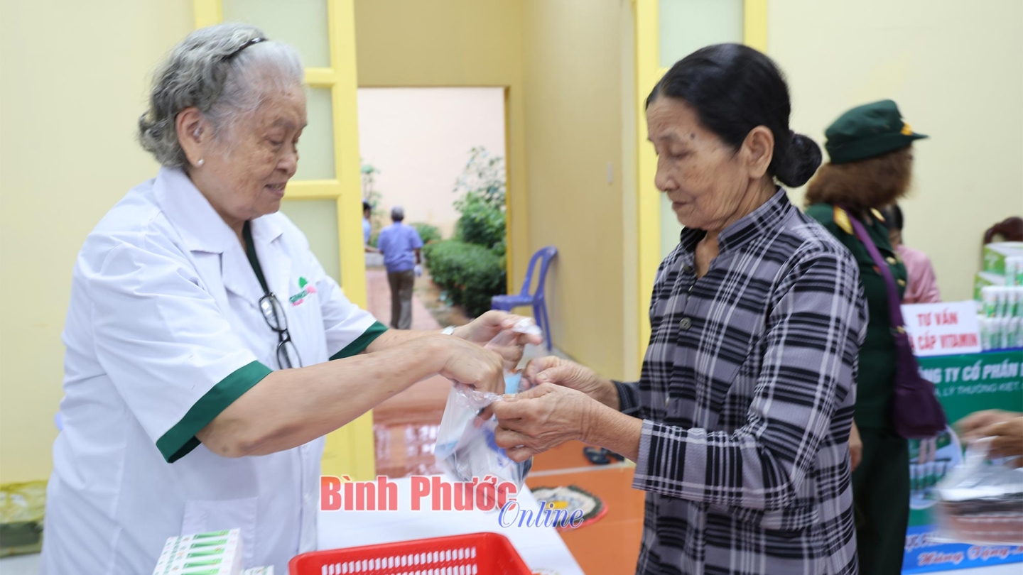 Người dân xã Lộc Hiệp được các y, bác sĩ tận tình hỏi thăm sức khỏe, cấp thuốc miễn phí