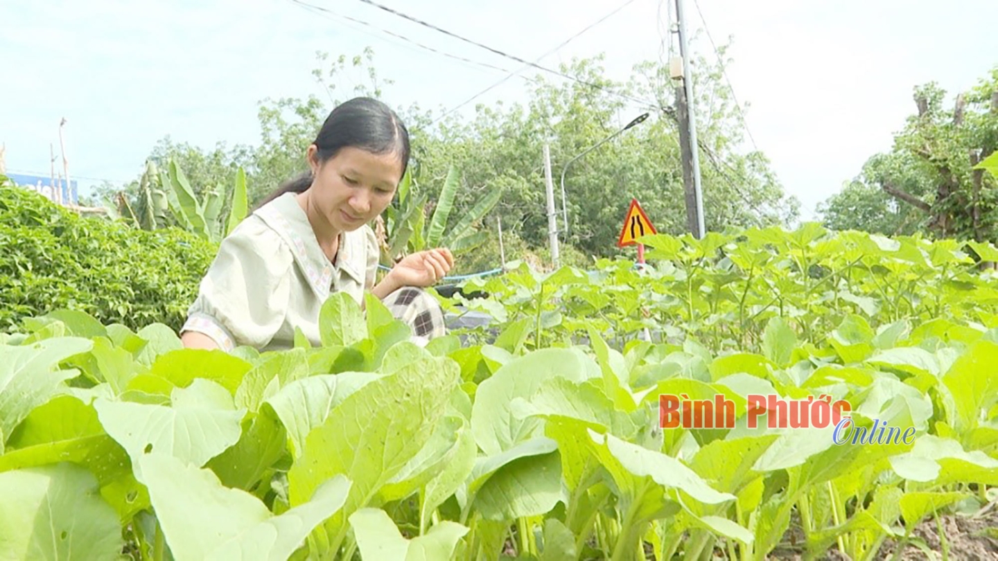 Chị Lê Ngọc Hà chăm sóc vườn rau, chăn nuôi nhỏ phát triển kinh tế gia đình