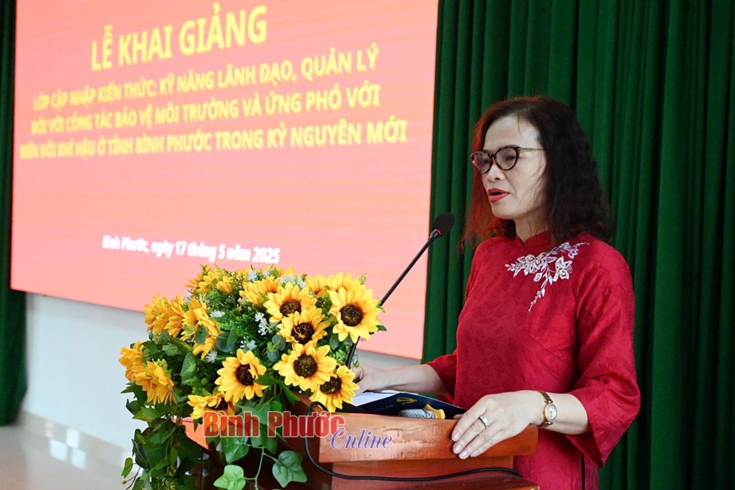 Phát biểu tại lễ khai giảng, PGS.TS Đặng Thị Ánh Tuyết, Phó Vụ trưởng Vụ Quản lý khoa học, Học viện Chính trị quốc gia Hồ Chí Minh nhấn mạnh: Mục tiêu của lớp tập huấn là cập nhật kiến thức về chủ trương của Đảng, chính sách, pháp luật, chương trình của Nhà nước về bảo vệ môi trường, ứng phó với biến đổi khí hậu, hướng tới phát triển bền vững; nâng cao nhận thức, kỹ năng lãnh đạo, quản lý, quản trị môi trường và ứng phó với biến đổi khí hậu tại địa phương, cơ quan trong tỉnh. Bên cạnh đó, cập nhật kiến thức, chia sẻ thông tin về thực trạng bảo vệ môi trường, ứng phó với biến đổi khí hậu của Việt Nam và một số địa phương trong cả nước; về tác động của vấn đề ô nhiễm môi trường, biến đổi khí hậu đến sinh kế của người dân.
