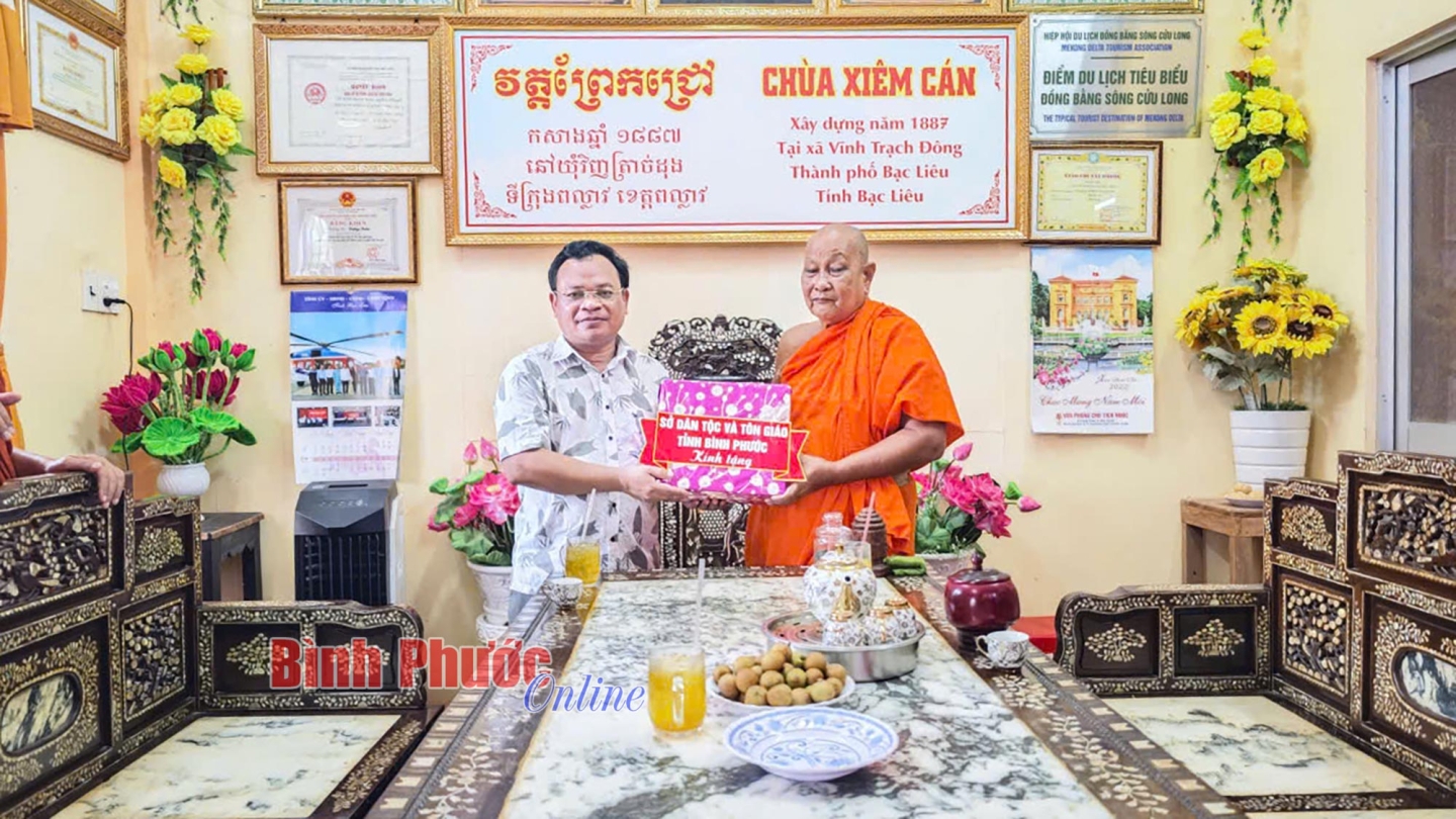 Đoàn đến thăm, chào xã giao tại chùa Xiên Cán, thành phố Bạc Liêu, tỉnh Bạc Liêu