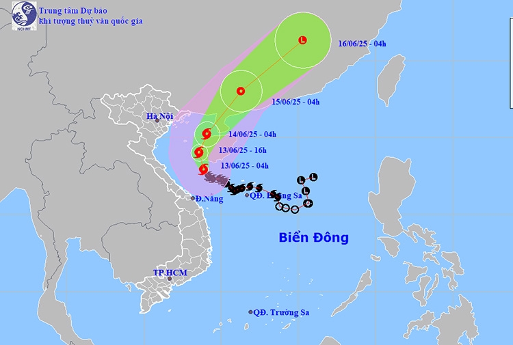 Dự báo đến sáng 14-6, bão đổi hướng Bắc Đông Bắc, tiến sát phía Đông Bắc vịnh Bắc Bộ, duy trì cường độ cấp 9-10, giật cấp 13. Sau đó tiếp tục suy yếu thành áp thấp nhiệt đới khi đi vào đất liền Trung Quốc.