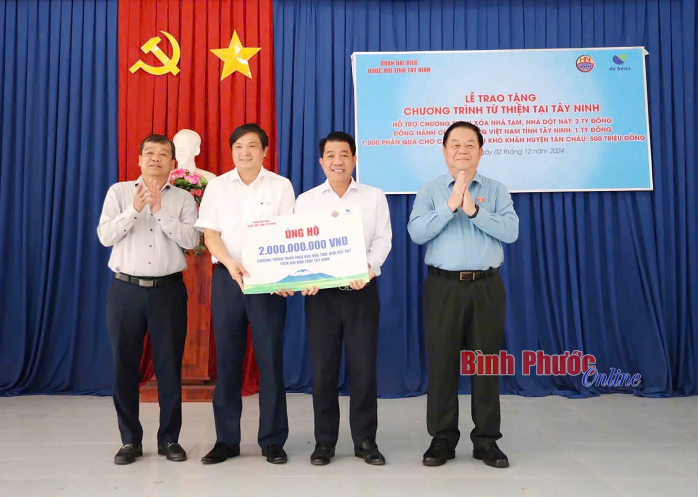 Tháng 12-2024, Đoàn đại biểu Quốc hội tỉnh Tây Ninh và UBND huyện Tân Châu phối hợp Tập đoàn Hùng Nhơn, Tập đoàn De Heus (Hà Lan) đã tổ chức trao kinh phí 2 tỷ đồng hỗ trợ triển khai xóa nhà tạm, nhà dột nát, chương trình an sinh xã hội và tặng 1.000 phần quà cho gia đình chính sách, hộ có hoàn cảnh khó khăn trên địa bàn huyện Tân Châu dịp tết Nguyên đán Ất Tỵ 2025. Buổi lễ trao tặng diễn ra trang trọng trước sự chứng kiến của Ủy viên Bộ Chính trị, Bí thư Trung ương Đảng, Trưởng ban Tuyên giáo Trung ương, đại biểu Quốc hội đơn vị tỉnh Tây Ninh Nguyễn Trọng Nghĩa và Phó Bí thư Thường trực Tỉnh ủy, Trưởng đoàn Đại biểu Quốc hội tỉnh Tây Ninh Phạm Hùng Thái.