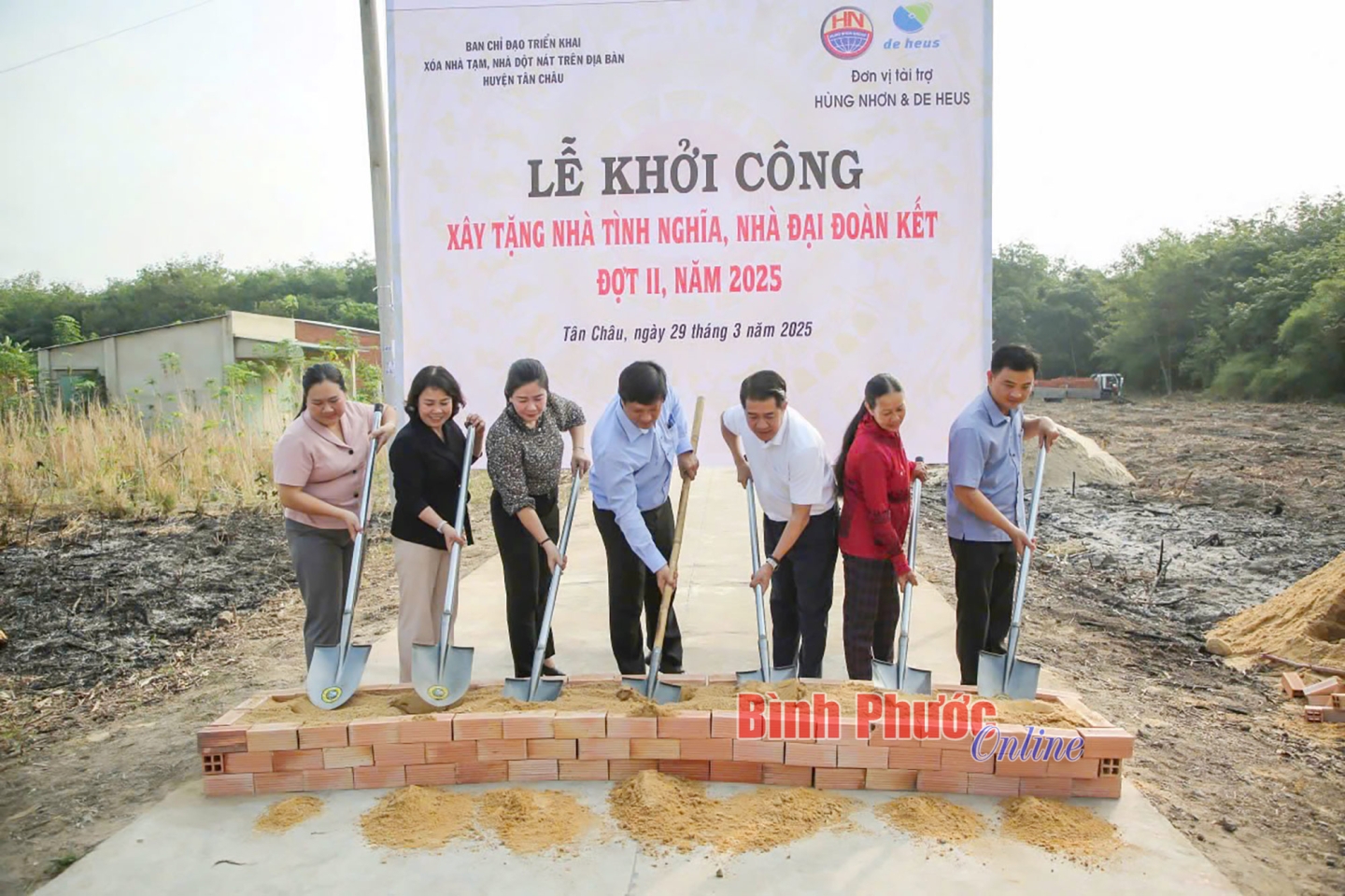 Ngay sau lễ trao tặng, doanh nghiệp đã phối hợp với chính quyền địa phương khảo sát chi tiết và lựa chọn hỗ trợ 22 gia đình thuộc các xã khó khăn tại huyện Tân Châu. Ngày 29-3, tại ấp Tân Lâm, xã Tân Hà, huyện Tân Châu đã diễn ra lễ khởi công xây dựng 22 căn nhà tình nghĩa, nhà đại đoàn kết với sự phối hợp của Tập đoàn Hùng Nhơn, Tập đoàn De Heus, Ban vận động Quỹ “Vì người nghèo” huyện Tân Châu và Đoàn đại biểu Quốc hội tỉnh Tây Ninh. Chỉ sau 1 tháng xây dựng, đến ngày 28-4, 22 căn nhà đã chính thức được bàn giao trong không khí ấm áp và đầy ý nghĩa tại huyện Tân Châu. Các ngôi nhà được xây dựng theo tiêu chuẩn kiên cố, mang lại sự an tâm cho người dân khi định cư lâu dài.