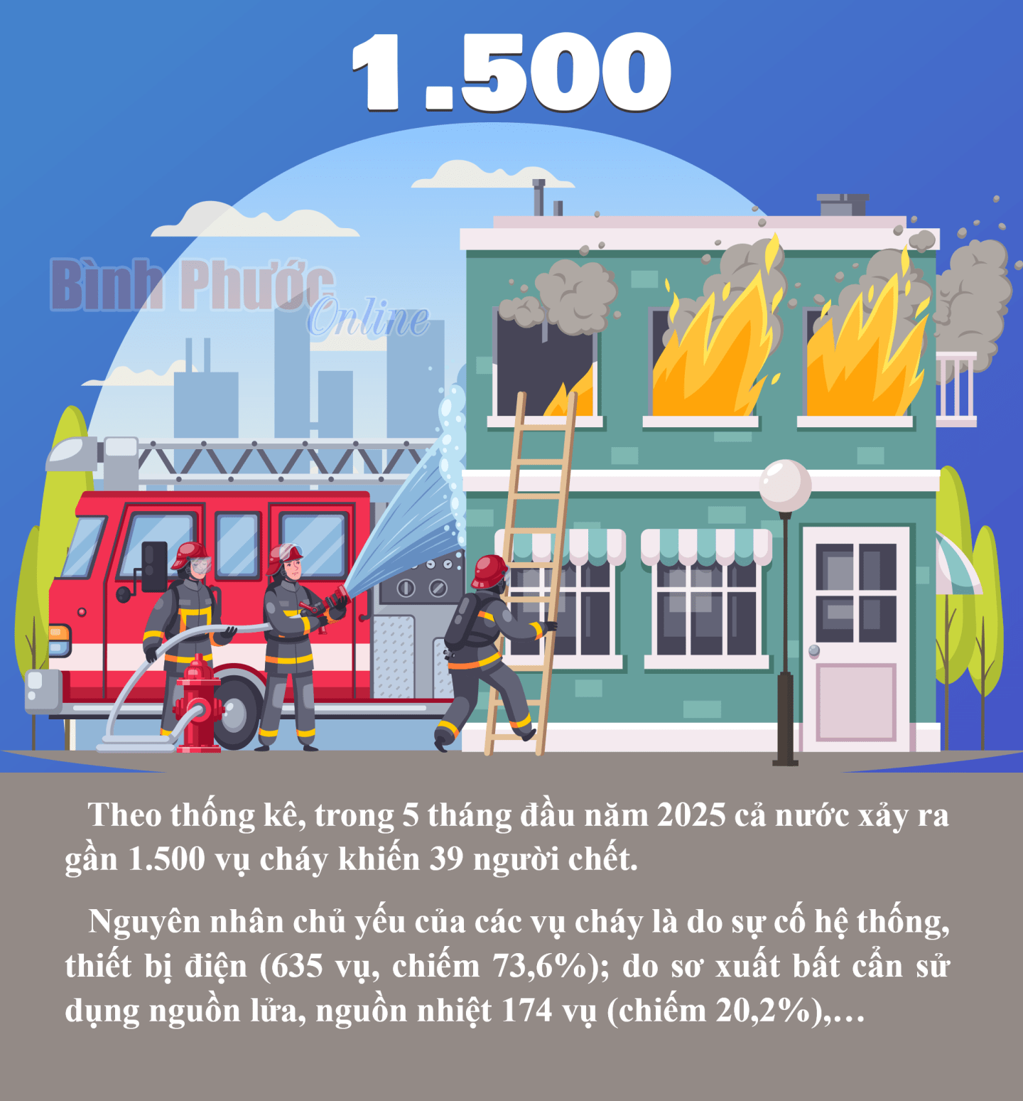 5 tháng đầu năm, cả nước xảy ra gần 1.500 vụ cháy