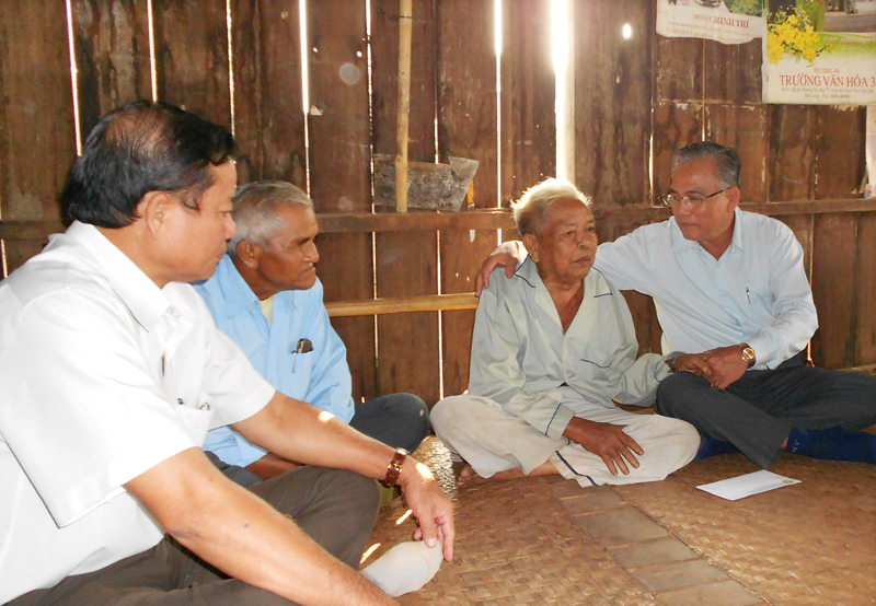 Đại diện lãnh đạo tỉnh, huyện Lộc Ninh thăm và chúc sức khỏe Anh hùng lao động Lâm Búp ở xã Lộc Khánh