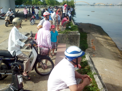 Người dân hiếu kỳ tập trung ngày càng đông khiến cầu sông Hàn kẹt xe gần một tiếng đồng hồ cho đến khi lực lượng công an đến giải tỏa.