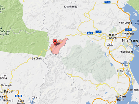 | Vị trí xảy ra tai nạn tại xã Sơn Thái, huyện Khánh Vĩnh, Khánh Hòa (điểm A). |