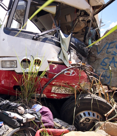 Ít nhất 6 người tử nạn và hơn 20 người bị thương khi chiếc xe khách chở giáo viên và con em của một trường tiểu học lao vào vách núi trên tuyến đường Nha Trang - Đà Lạt.