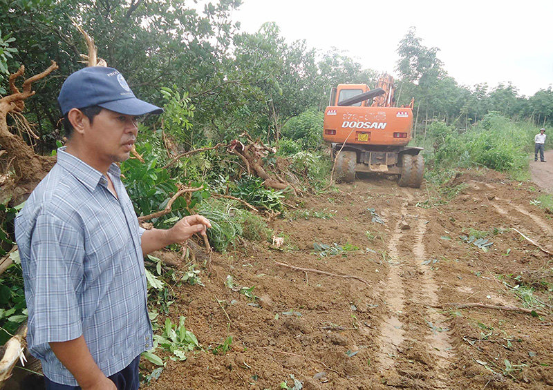 Ông Lê Văn Ngọc, ngụ ấp Suối Cam đã hiến 1000m2 đất và 165 cây trồng các loại để làm đường
