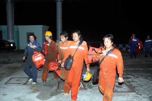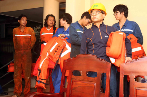 Ngay sau đó, thuyền trưởng của hai tàu trên đã thả các phao cứu sinh xuống biển để 19 thủy thủ trên tàu Heung A Dragon lên các phao này.