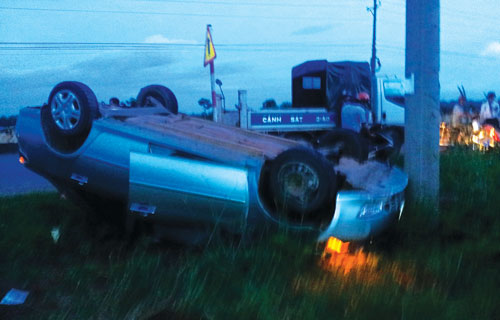 Theo thông tin ban đầu, vào thời điểm trên, ông Vũ Văn Lành (43 tuổi), Chủ tịch UBND xã Tân Hưng, H.Đồng Phú điều khiển chiếc xe ô tô 4 chỗ mang BKS 52V-8265 chở ông Nguyễn Hữu Duy, Bí thư xã Tân Hưng, lưu thông từ hướng TX.Đồng Xoài đi TP.HCM. Khi đi đến đoạn thị trấn Tân Phú, H.Đồng Phú thì một chiếc xe Toyota Camry đang chạy cùng chiều bất ngờ vượt lên ép xe ông Lành. Đuôi chiếc xe này đánh mạnh vào đầu xe của ông Lành khiến chiếc xe tông thẳng vào con lươn, lật ngửa kéo lê trên đường và chỉ chịu dừng lại khi tông vào cột điện bên đường (ảnh).