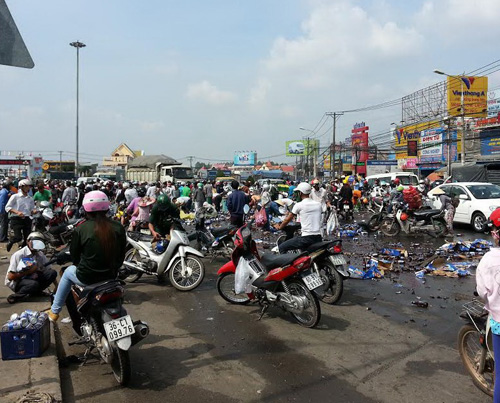 Bức ảnh này được cho là chụp tại địa điểm xảy ra vụ "hôi bia" diễn ra tại thành phố Biên Hòa (Đồng Nai) cách đây vài ngày khi một xe chở bia gặp nạn trên đường.