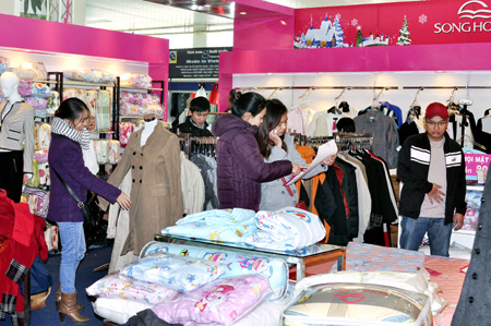 | Nhiều doanh nghiệp tham gia bán hàng bình ổn giá tại Hội chợ Thời trang năm 2013 (ảnh chụp sáng 25-12 tại Trung tâm Triển lãm Giảng Võ, Hà Nội) |