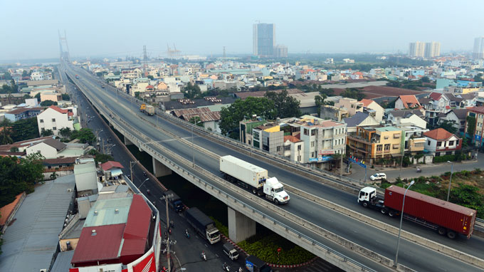 Xe cộ lưu thông qua cầu Phú Mỹ (Q.7 - Q.2), TP.HCM chiều 3-1