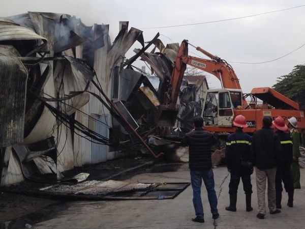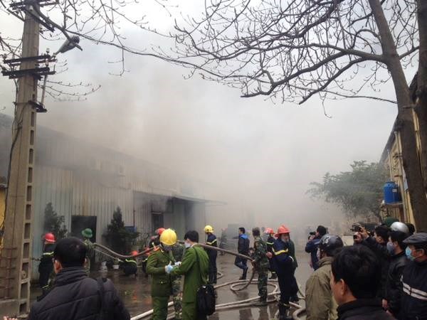 Cơ quan chức năng cũng đã huy động thêm lực lượng cảnh sát môi trường tới phối hợp chữa cháy. Tới gần 13 giờ, cơ bản đám cháy đã bị khống chế, hiện chỉ còn lửa âm ỉ trong các nhà kho.
