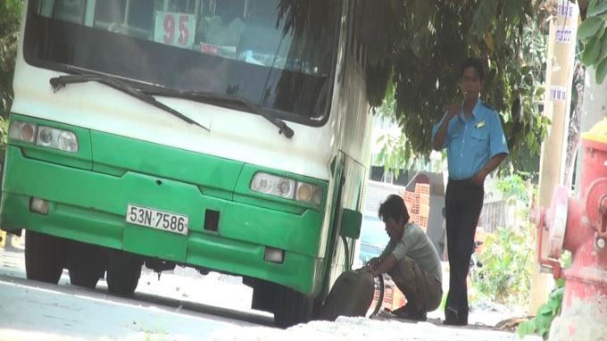 Nhiều tài xế xe buýt chạy tuyến 95 bến xe miền Đông - Khu công nghiệp Tân Bình (TP.HCM) thuộc Công ty TNHH một thành viên Xe khách Sài Gòn (Saigon Bus) thường xuyên móc nối với đầu nậu rút dầu xe buýt bán công khai.
