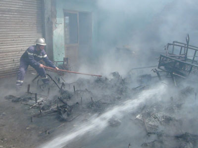 Hàng chục thùng rác cùng nhiều vật tư thiết bị đã bị thiêu rụi. |