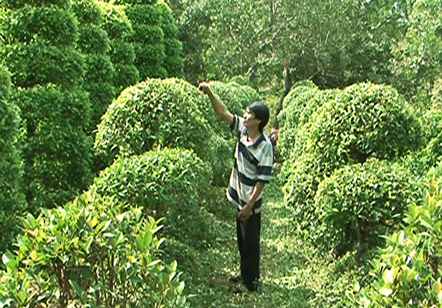Là nông dân trồng điều và phụ hồ mỗi khi hết mùa vụ, nhưng anh Vinh lại có lòng đam mê cây cảnh nên sưu tầm hết cây này đến cây khác. Năm 2004, anh nghe theo nghệ nhân Vương Ngọc Chánh Tâm trồng 4.000 cây mai trong vườn điều. Năm 2009, anh tiếp tục trồng thêm 7.000 cây mai dưới tán điều. Chỉ bán theo giá mai nguyên liệu, gia đình anh đã có thêm thu nhập hàng trăm triệu đồng ngoài cây điều và các loại cây trồng khác. Đến nay, vườn mai dưới tán điều của gia đình đã được 10 năm. Điều khá ấn tượng ở khu vườn của gia đình anh là không chỉ có cây mai mà còn nhiều cây trồng khác có giá trị kinh tế cao. Xanh, si, lộc vừng là 3 loại cây trồng ngoài cây mai. Anh Vinh đang có 1 ngàn gốc cây xanh đã định hình trong vườn điều. Mỗi năm, vườn cây xanh cho thu nhập không dưới 50 triệu đồng. Ngoài giá trị kinh tế, vườn cây xanh của gia đình anh còn mang kiểu “kiến trúc xanh” hết sức độc đáo của một vùng quê. Với anh Vinh, lòng yêu nghề, chịu khó học hỏi sẽ giúp người nông dân có những bước đi sáng tạo để nâng cao thu nhập cho gia đình.