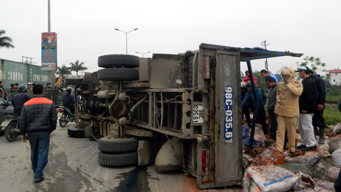 Lúc 14g40 ngày 22-3, một chiếc xe tải chở mùn cưa bị lật tại Km 15 quốc lộ 5 đoạn qua xã Dương Xá (Gia Lâm, Hà Nội) khiến 1 học sinh đang đi bên đường bị thương nặng, giao thông ùn tắc cục bộ trong nhiều giờ liền.