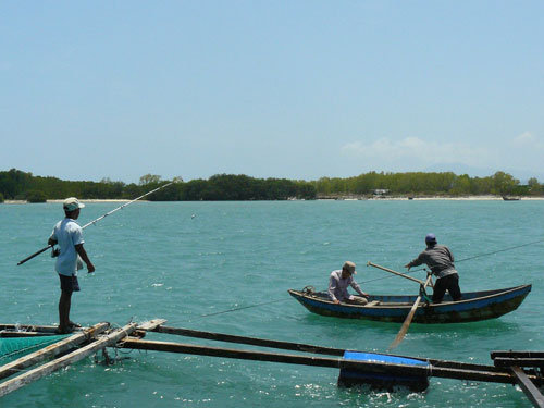 Theo tìm hiểu của chúng tôi, ngư dân gọi những cá mập con câu được là cá nhám, nên không chút dè chừng, thậm chí họ còn đưa con trẻ ra tận bè nuôi cá - nơi câu được cá mập để tắm, vui đùa. Tại vị trí mà người dân câu được cá, mực nước ở đây không sâu, khoảng 5-7 m.
