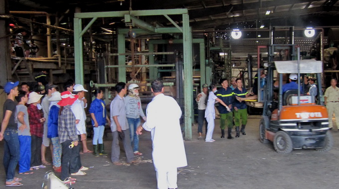 Trước đó, khoảng 10g20 cùng ngày, một công nhân xuống hầm lọc bột tái chế giấy để dọn vệ sinh. Khi công nhân này vừa xuống nơi thì bị ngạt khí mêtan nên la thét kêu cứu. Nghe tiếng kêu cứu, năm công nhân gần đó nhảy xuống cứu. Tuy nhiên do không có đồ bảo hộ nên lần lượt cả năm công nhân này đều bị ngạt khí mêtan và bất tỉnh.