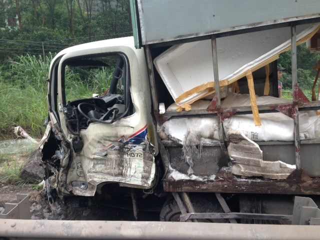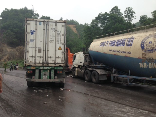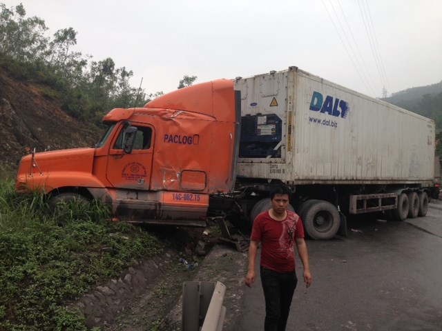 Xe container biển kiểm soát 14C-062.15 va chạm với xe tải biển kiểm soát 14N-9448 đi cùng chiều