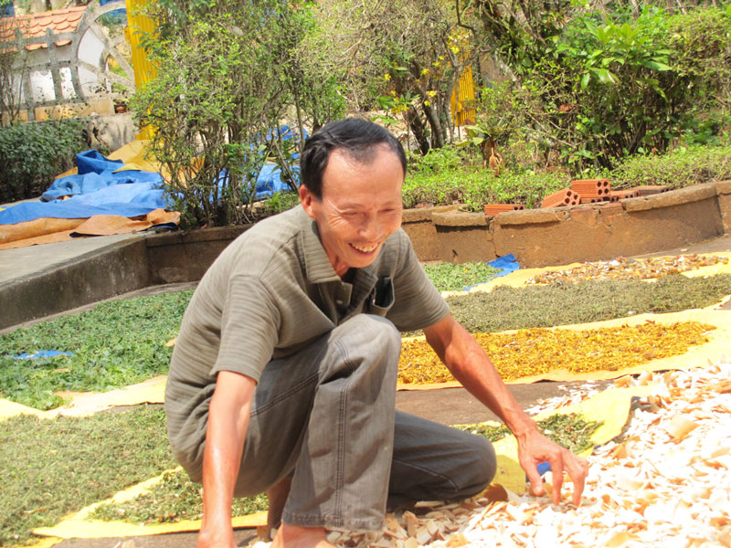 Hàng ngày ông Vinh vẫn tranh thủ phơi thuốc cho Hưng Lập Tự