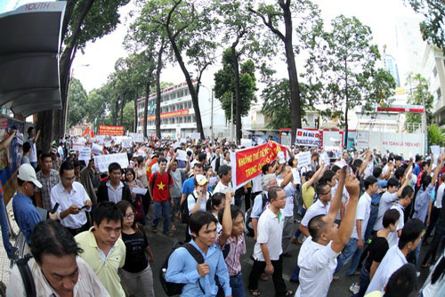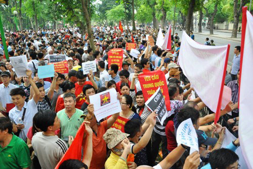 Sáng nay 11-5, người dân trong cả nước đã đồng loạt tổ chức tuần hành để phản đối hành động Trung Quốc hạ đặt trái phép giàn khoan Hải Dương 981 trong vùng biển Việt Nam.
