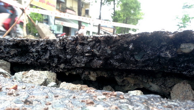 ![]() Mặt đường bị biến dạng lõm xuống khoảng 5cm |