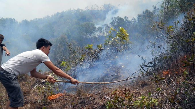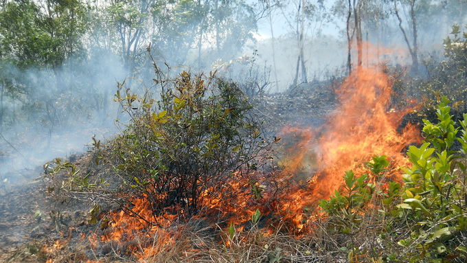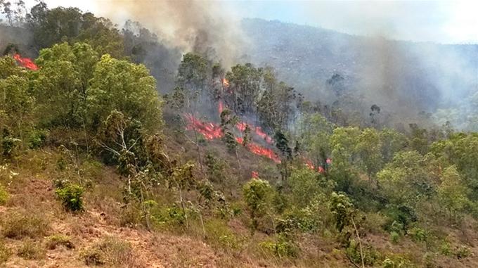 | Đến hơn 14g ngày 9-8, đám cháy rừng vẫn chưa được dập tắt - Ảnh: Xuân Vinh |