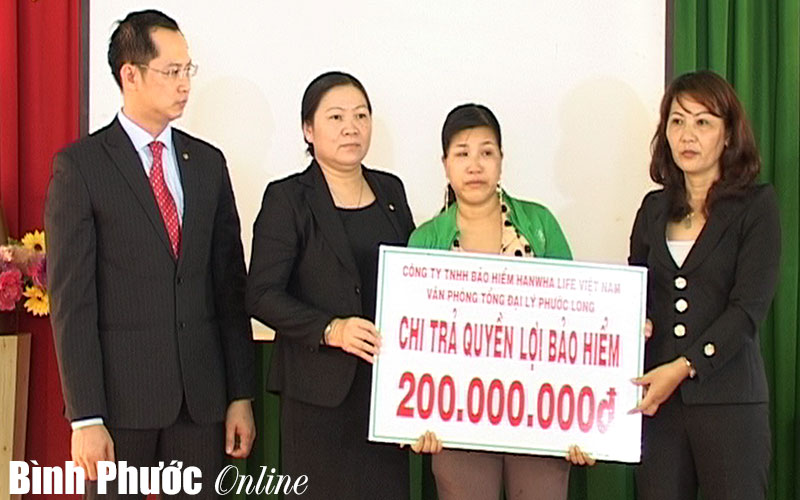 Tại buổi lễ, lãnh đạo văn phòng đã trao 200 triệu đồng cho bà Nguyễn Thị Phương (ở thôn 2, xã Đa Kia) được hưởng quyền lợi tham gia bảo hiểm của chồng là ông Trương Nhật Cường, tử vong ngày 15-4-2014. Ông Nhật Cường đã tham gia mua gói bảo hiểm An khang - Đắc lộc trọn đời cho vợ, đồng thời mua luôn sản phẩm Tử kỳ của công ty cho bản thân từ tháng 4-2012. Việc chi trả bảo hiểm kịp thời của công ty giúp gia đình bà Phương vơi bớt khó khăn trong cuộc sống khi đã mất đi người trụ cột trong gia đình.