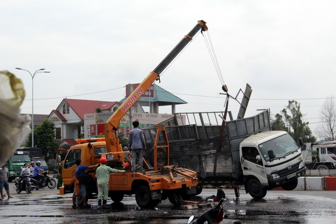Vụ tai nạn không gây thiệt hại về người nhưng khiến giao thông trên đường Bùi Văn Hòa ùn tắc suốt 3 giờ. Nguồn VnExpress