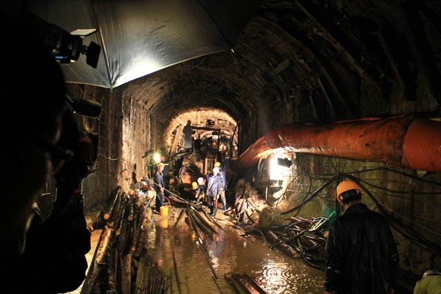 Theo quan sát của P.V VietNamNet tại vị trí hầm bị sập, lực lượng cứu hộ - cứu nạn đang cố gắng gia cố bằng các thanh sắt chắc chắn, vít chặt trên mái hầm. Nước ở bên trên rò rỉ khá nhiều kèm theo cái lạnh khoảng 12 – 13 độ C của thời tiết tại địa phương, gây không ít khó khăn cho công tác cứu hộ - cứu nạn.