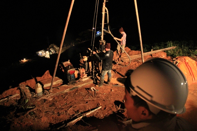 Mũi khoan được thực hiện từ trên đỉnh núi xuống vị trí 12 người mắc kẹt đến 4h sáng thì trở ngại, khi gặp phải đá cứng