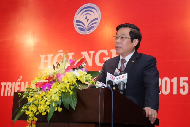 Phó Thủ tướng Vũ Đức Đam phát biểu tại Hội nghị Triển khai kế hoạch 2015 của Bộ TT&TT, sáng 25-12 tại Hà Nội