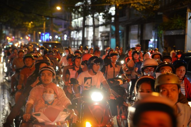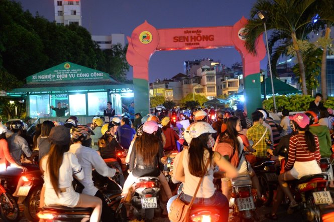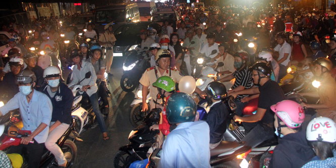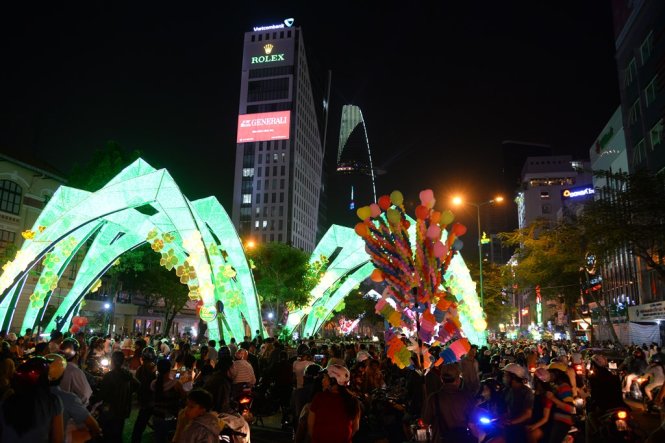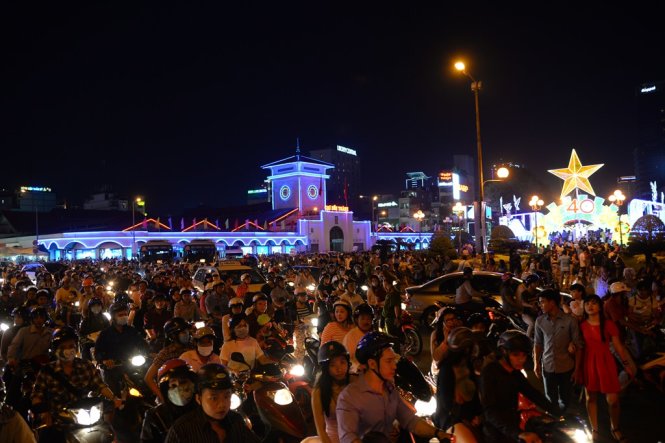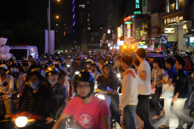 Tuy thời điểm bắn pháo hoa là 0g00, nhưng mới 19g, con đường Tôn Đức Thắng, Hàm Nghi (Q.1) đã đông nghịt người. Đến khoảng 21 giờ thì hầu như không thể di chuyển được, mọi người phải gửi xe đi bộ.