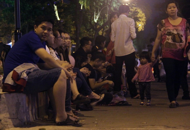 Nhiều dãy ghế, bồn hoa đã kín chỗ ngồi. Nhiều người không muốn bỏ đi vì sợ bị mất chỗ, có người mang theo thực phẩm ăn chờ đến đến giao thừa. Ngồi bệt dưới bồn cỏ, Hoài và Thiệt - sinh viên năm nhất và năm cuối trường Đại học công nghệ thực phẩm cho biết đây là lần đầu tiên ra ngắm bắn pháo hoa ở Sài Gòn.
