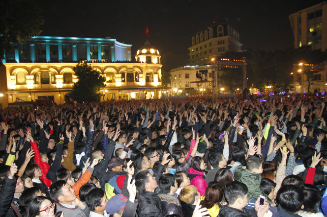 | Hàng ngàn người đã cùng nhau đổ về địa điểm Nhà hát lớn để cùng chờ đón khoảnh khắc giao thừa |