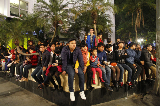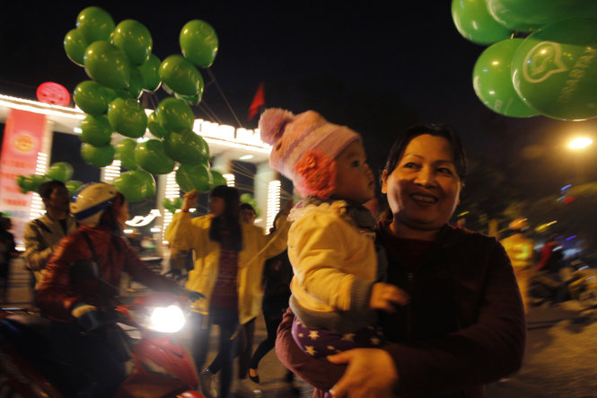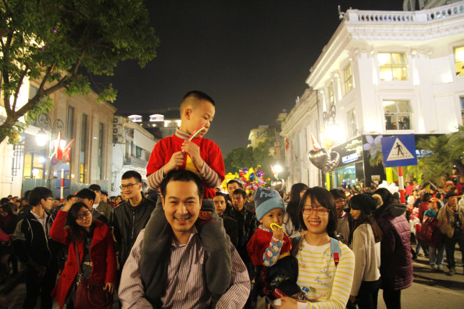| Nhiều gia đình đã rồng rắn xuống đường đón giao thừa |
