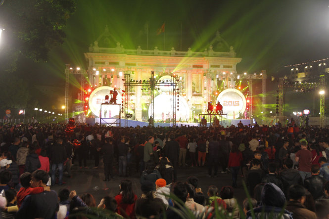 Trước đó, ngay từ rất sớm, tại các địa điểm như Nhà hát lớn Hà Nội, Hồ Gươm, Nhà thờ Lớn, Hồ Thuyền Quang…, hàng ngàn người dân Thủ đô nô nức đổ xuống đường để cùng nhau đếm ngược thời gian chào đón năm mới 2015.