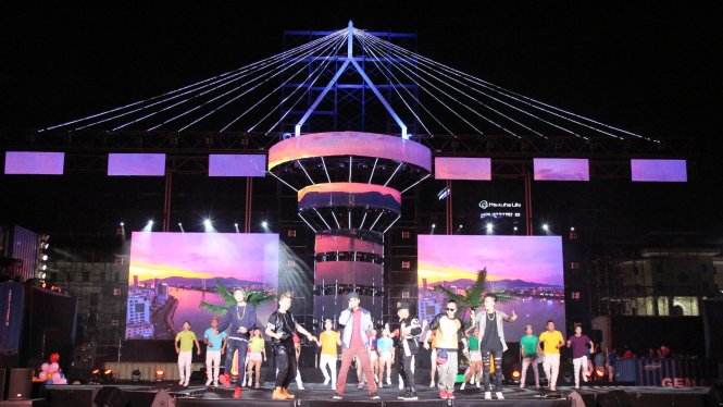 | Sân khấu “Tôi yêu Đà Nẵng 2015” với hiệu ứng đèn LED làm chương trình trở nên sôi động |