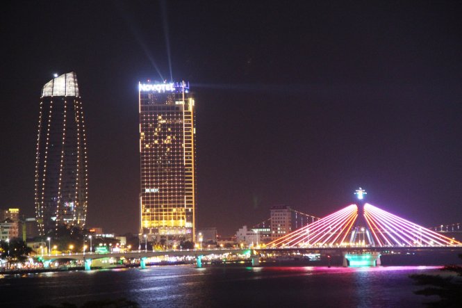 Rất đông người dân đã tập trung ra dọc đường Bạch Đằng và ba cây cầu Sông Hàn, cầu Rồng, cầu Trần Thị Lý cùng nhau chụp hình, vui chơi. Nhiều khu vực như khách sạn, nhà hàng, siêu thị cũng được trang trí lộng lẫy để chào đón du khách đến vui chơi, đón năm mới.