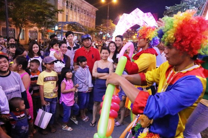 Người lớn, trẻ nhỏ đổ ra khu vực đường Hồ Tùng Mậu (Q.1, TP.HCM) tham gia những trò chơi trước thời khắc năm mới |
