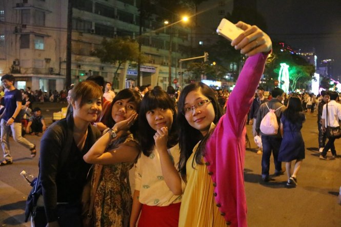 Các bạn trẻ cùng chụp ảnh vui đón năm mới |