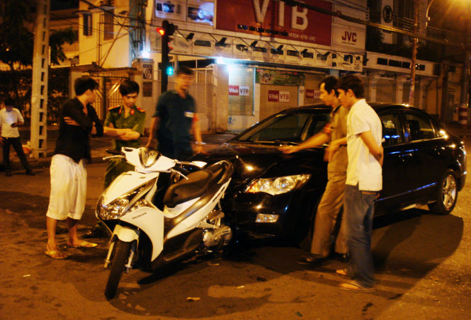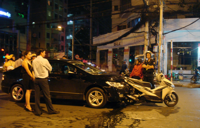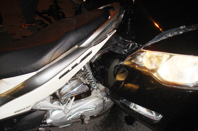 Trước đó, lúc 23g35 đêm 5-1, chiếc Air Blade này khi chạy trên đường Nguyễn Thị Minh Khai hướng về phía Cách Mạng Tháng 8 đã bị chiếc xe hơi biển số 52P - 1295 đâm thẳng từ phía sau.