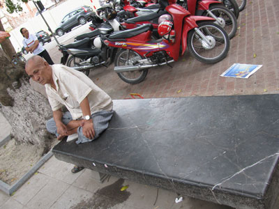 Chiếc ghế đá khi còn nguyên vẹn là điểm ngồi hóng mát lý tưởng bên bờ hồ Gươm.