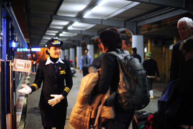 Trưởng tàu Đặng Xuân Định cùng đoàn tiếp viên tàu SE3 chuẩn bị đón khách đi chặng Bắc - Nam. Xuất phát từ Hà Nội lúc 22h tối, tàu sẽ chạy 31 tiếng để vào đến ga Sài Gòn lúc 5h30 sáng. Dù được nâng cấp, nhưng giá vé SE3 không thay đổi so với tàu thường. Tàu gồm 13 toa, trong đó có 11 toa hành khách và 2 toa phục vụ. Mỗi ngày có 2 chuyến xuất phát từ hai đầu Sài Gòn và Hà Nội.