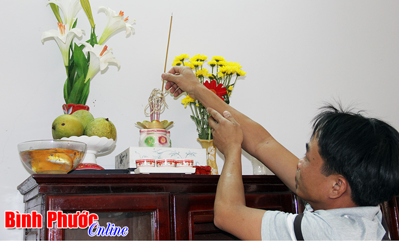 Cá chép được anh Nguyễn Hữu Đô ở phường Tân Phú (TX. Đồng Xoài) đặt lên bàn thờ cúng tiễn ông Táo với mong muốn gia đình gặp nhiều may mắn trong năm Ất Mùi
