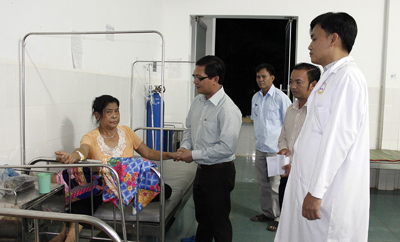 Bí thư huyện ủy Bù Đốp Hà Anh Dũng thăm, động viên bệnh nhân đang điều trị tại Bệnh viện đa khoa huyện