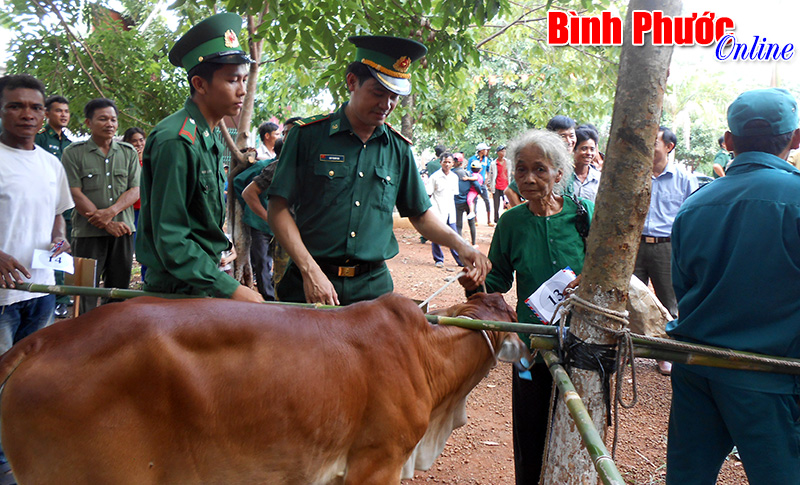 Bộ chỉ huy Bộ đội Biên phòng Bình Phước vận động sĩ quan, cán bộ, nhân viên đóng góp ngày lương được 709 triệu đồng, Bệnh viện Trưng Vương (TP. Hồ Chí Minh) hỗ trợ 100 triệu đồng mua bò sinh sản tặng người nghèo 3 huyện biên giới: Lộc Ninh, Bù Đốp và Bù Gia Mập, trong đó 7 xã biên giới của huyện Lộc Ninh được tặng 14 con, mỗi con trị giá 20 triệu đồng. Dịp này, Bệnh viện Trưng Vương khám, phát thuốc nhân đạo cho 500 người nghèo, dân tộc thiểu số ở 2 xã Lộc Hòa, Lộc An, tổng trị giá 40 triệu đồng.